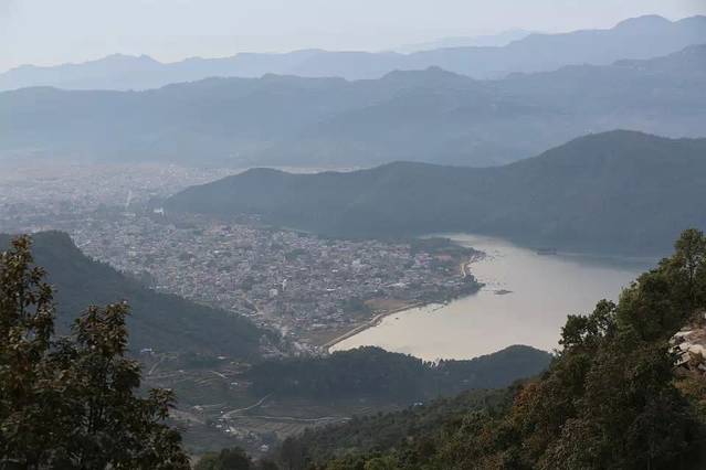 站在萨郎科山顶鸟瞰,山脚下的博卡拉镇和费瓦湖尽收眼底。