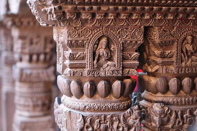 克利须那神庙廊柱上精美的石刻。