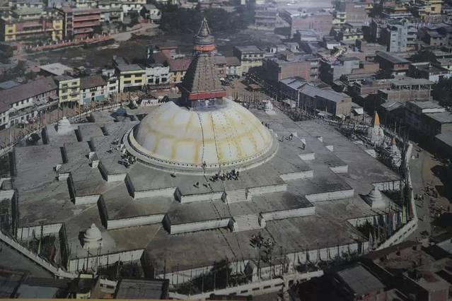 尼泊尔世界文化遗产之一的博大哈佛塔是亚洲乃至世界最大的覆钵体半圆形佛塔。建筑形式跟斯瓦扬布拉特相似,但体积大了很多。塔高38米,周长100米。巨大的神眼俯视着加都河谷。三层八角形平台衬托出磅礴宏大的气势。