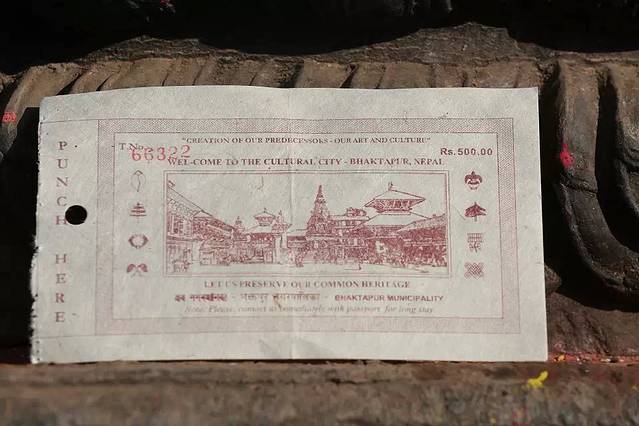 巴德岗杜巴广场的门票。出发前,N多的攻略告诉我:凭咱天朝的护照买门票能优惠。在售票窗口,哥当着几个欧洲老外的面无比自豪掏出护照,还没等做出扬眉吐气的POSE,就遭售票大叔当头一棒,他看都不看一眼,嘴里无比清晰地用英语报出全额票价。我只能理解为这几年咱们来的土豪太多,把尼泊尔人民搞红眼了。(PS:现在景点门票只有南亚区域合作联盟成员国国民才能享受优惠待遇。)
