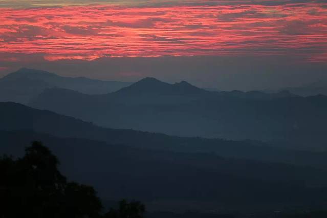 2015新年的朝霞,云层悄无声息中被染得通红。