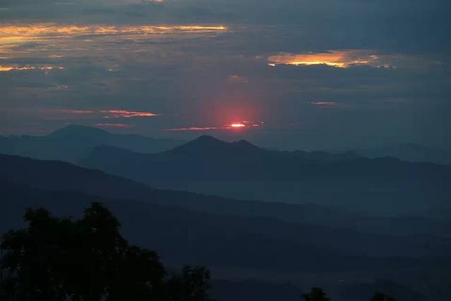 夕阳蔓延过鱼尾峰的山腰