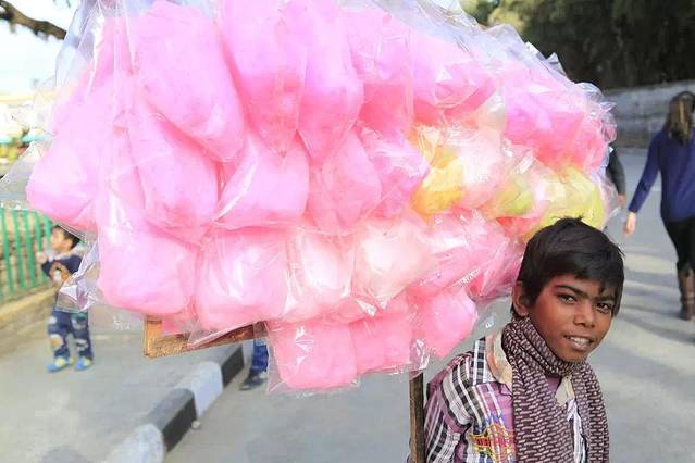 卖棉花糖的小男孩。