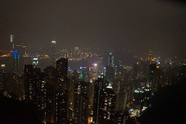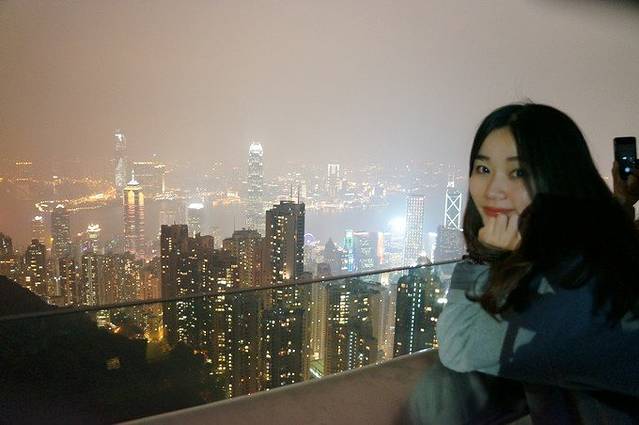 等我们吃完饭就到观景台看维多利亚港夜景,风太大太冷,而且因为雾蒙蒙的,拍出的夜景效果不好,将就看了吧。