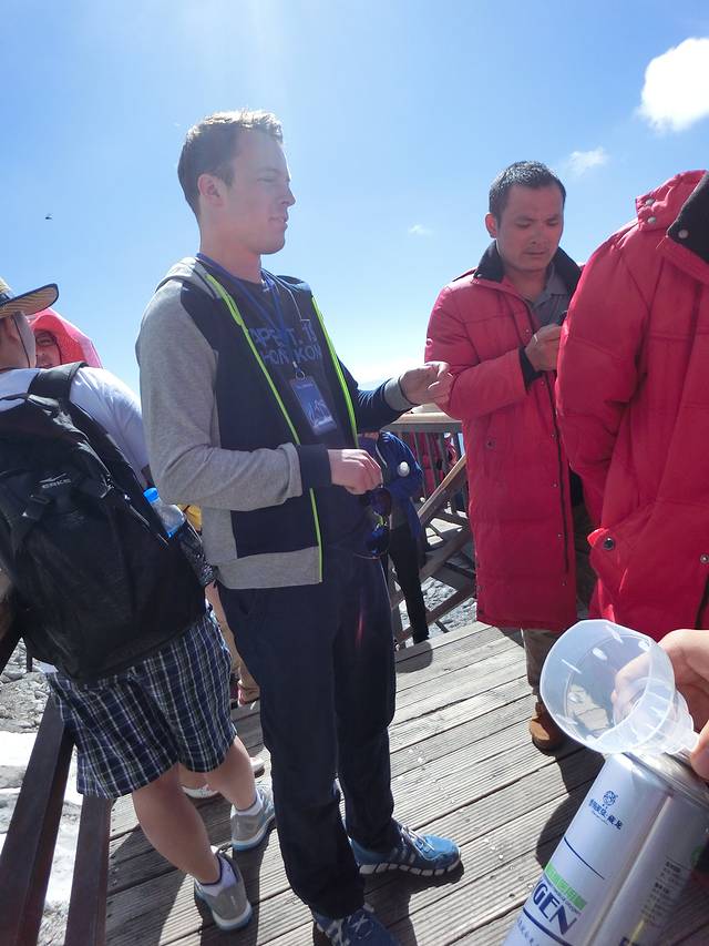 雪山上并不冷,我只穿了一件毛衣,老公穿了件薄外套,两人合用了一瓶氧气(大部分都被我吸啦)