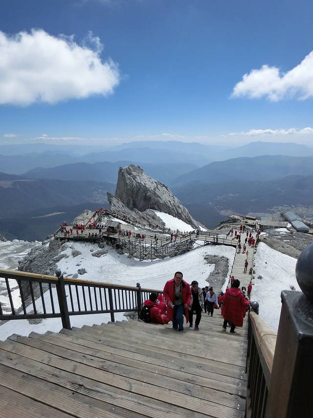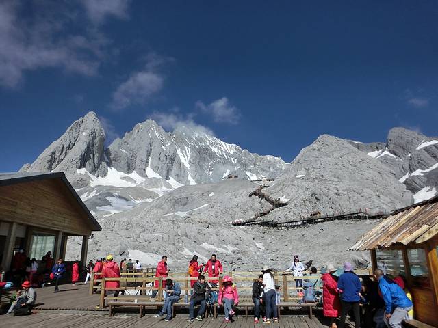 导游叫阿林,挺好的~~七点十分集合 大巴车会在离你最近的马路上接你,很人性化,不要迟到哦!不等人的!中途会去拿氧气和羽绒服,大概半个小时就到玉龙雪山了