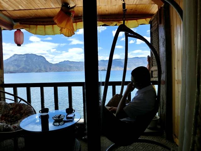 隆重介绍一下守望客栈,无敌湖景!!!视野很宽阔,阳台上的躺椅和摇篮特别舒服,真的想一直在那里了。。。我们一起在阳台喝喝茶聊聊天好惬意,楼下好多人很羡慕,进来问老板,已经没房啦~~他家就三间带阳台的,而且视野开阔没有树挡着,大落水这边只有他家门口没有树!!我提前一个多月订的,同行的另外一对也想订来的,当时也没房了。。。