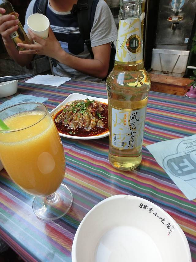 最爱风花雪月啤酒了~~!清清爽爽,解渴!芒果汁和酸梅汤没有外面的好吃,那个茄子也还好,有点酸。