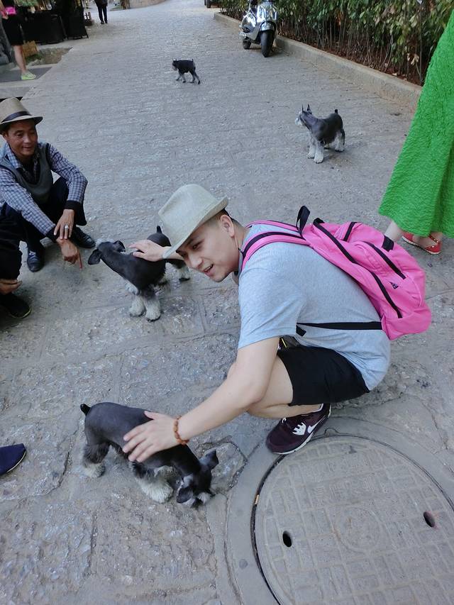 咦~~雪纳瑞诶,比我们那边的好看很多(品种很好,一般的雪纳瑞都很丑的),老公背的包是我的啦!他说我穿那么淑女不适合背这种,所以全程都他背啦!好贴心~~大家不要笑他