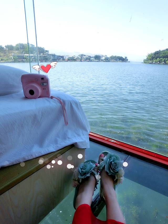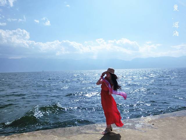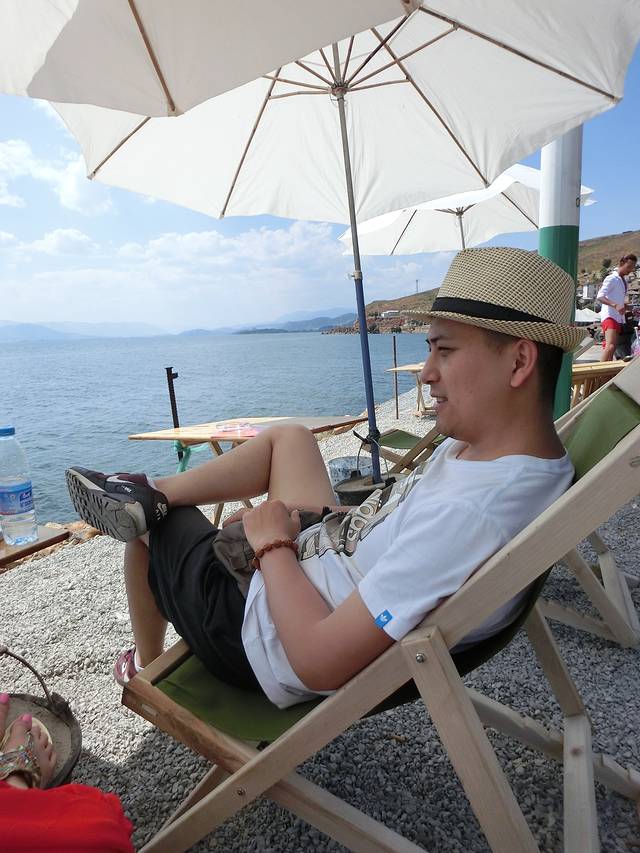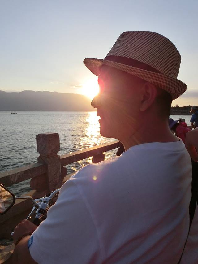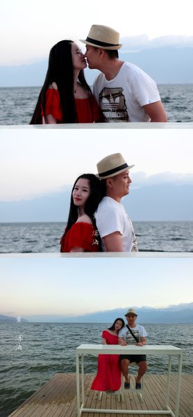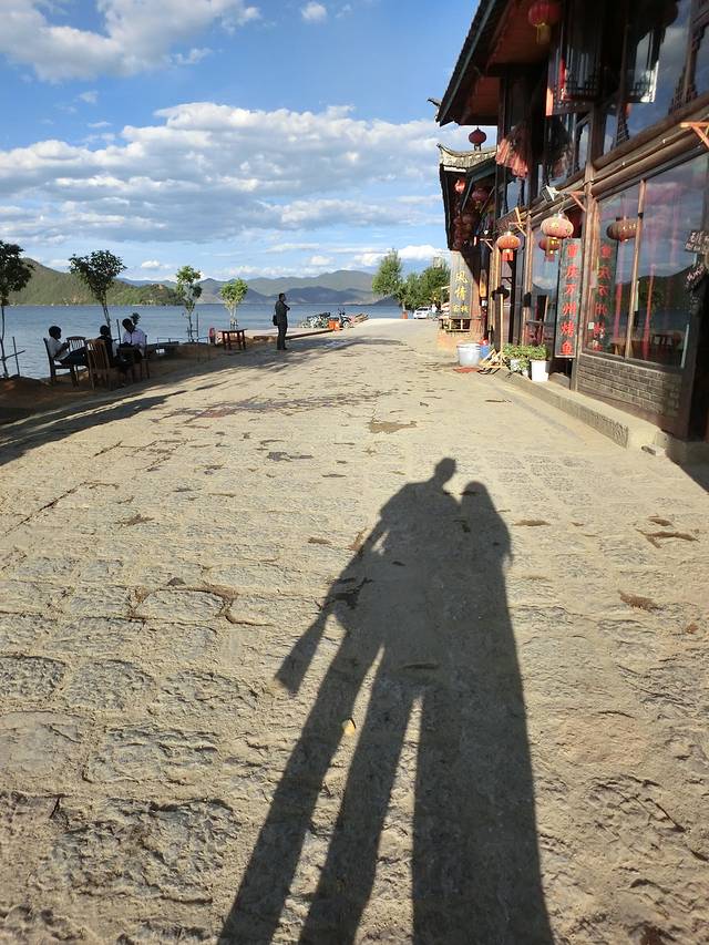看完日出司机师傅带我们去三家村吃早餐划船(其实师傅带着去的地方都会拿回扣的),因为另外两对先去的双廊早已划过船了,这儿划船每人50元偏贵我们就都没有划,开始去环湖了。