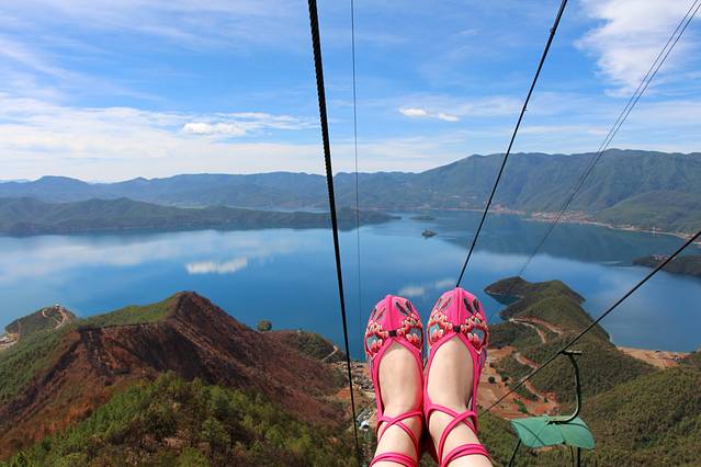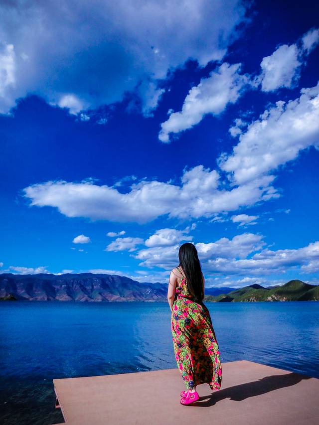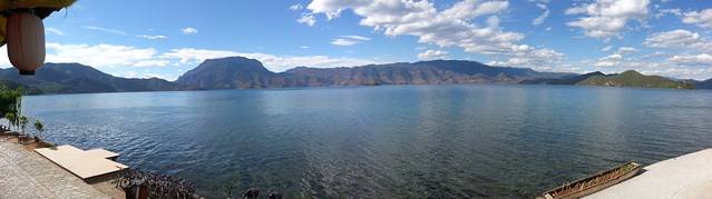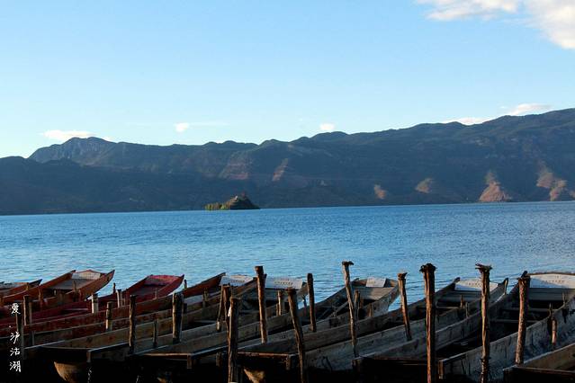 从阳台看到的泸沽湖,顿时爱上了这里,水很清很蓝,让我想起了那年三亚的蜈支洲。
