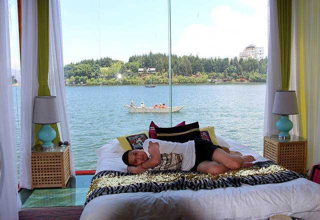 来阳台休息休息~~不一样的感觉!!没有小渔村感觉对面是南诏风情岛