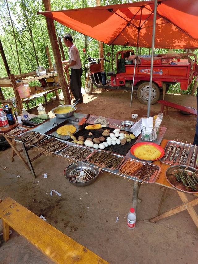 司机会在途中停在一个小饭馆吃饭,天太热路又颠实在没食欲,就稍微吃了点自己带的。路途中停了n次。