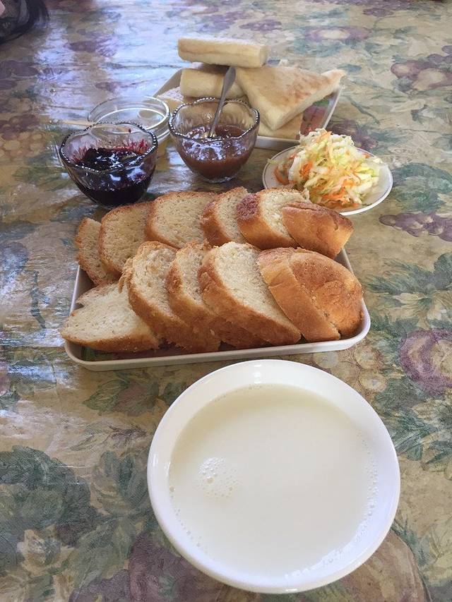 这里的早餐叫大列巴,早餐牛奶,鸡蛋,蓝莓果酱自家酿的,好好吃,把这个酱涂在面包上超级赞,而且这些东西随便吃,吃到你饱为止