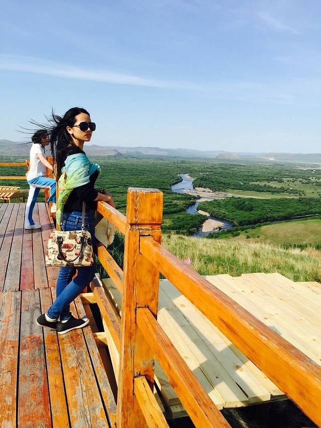 根河湿地面积非常大,是亚洲第一湿地哦,学生票是40元.但是从山底下到山顶要走路半个钟,一般游客都是做观光车上去,要20元,感觉有点坑,我和表姐觉得还是走路上去好,因为慢慢地观赏路边的风景也是一种享受