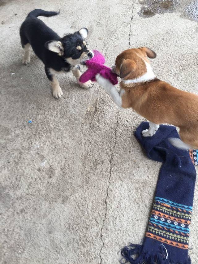从进入民宿整理好行李出来,这两只汪汪还在争这只手套
