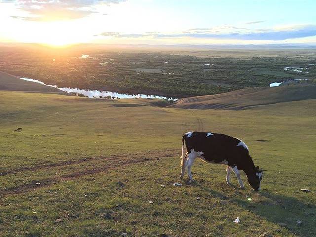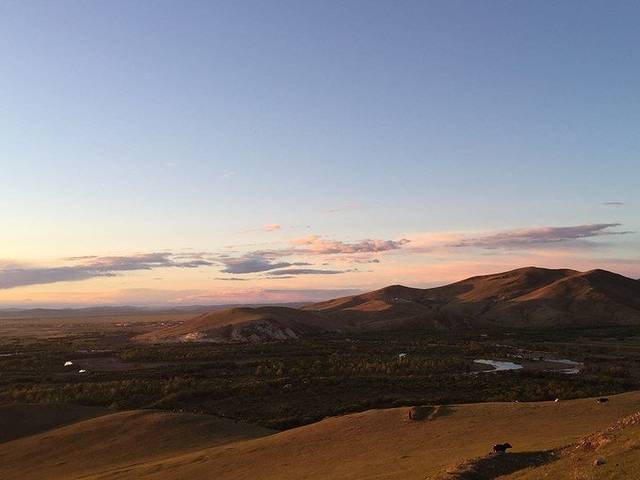 夕阳西下,清澈的溪水,绿色的原野,远处雪白的蒙古包炊烟袅袅,偶尔远处传来的狗吠声,周围那么静谧而富有生活气息