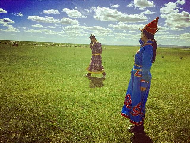 骑了马,师傅给我们借来了蒙古袍,真的太太感动了,一路上对我们和照顾,真的非常感谢~~~