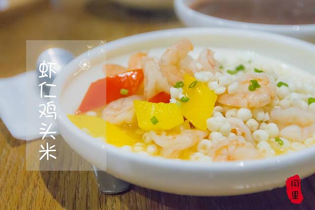 鸡头米是苏州一带的最大特色,甚至同里古镇的吉祥物都是鸡头米做的卡通形象。鸡头米的口感跟薏米几乎一模一样,更白更大,本身没什么味道,就着汤汁吃还是不错的。