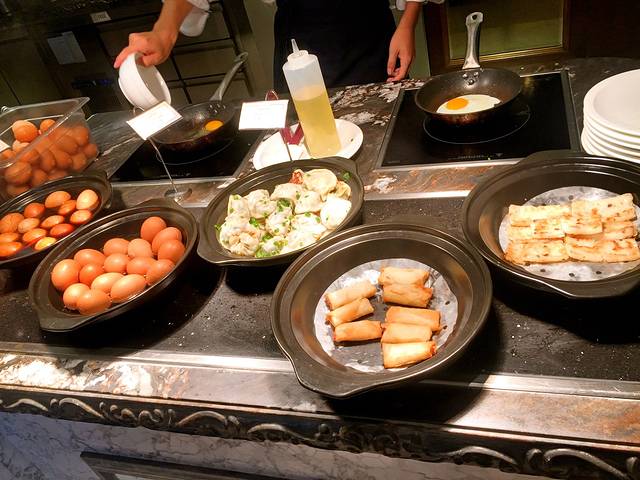 这家酒店的早餐也是值得夸一下的,品种多不算,亮点还是服务,每个服务员都会把你要的小点心亲自送到你餐桌上,不要排队,不要等候,你只需要跟服务员说你要什么。