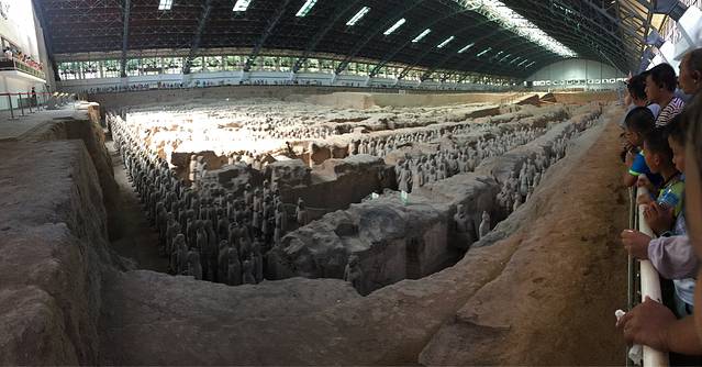 一号坑是参观兵马俑的重头,现在虽然怕氧化大部分被回填了,但那里的人邀请你九年后再来,那时可以有技术发掘并保留,你可以看到彩色兵马俑了。
