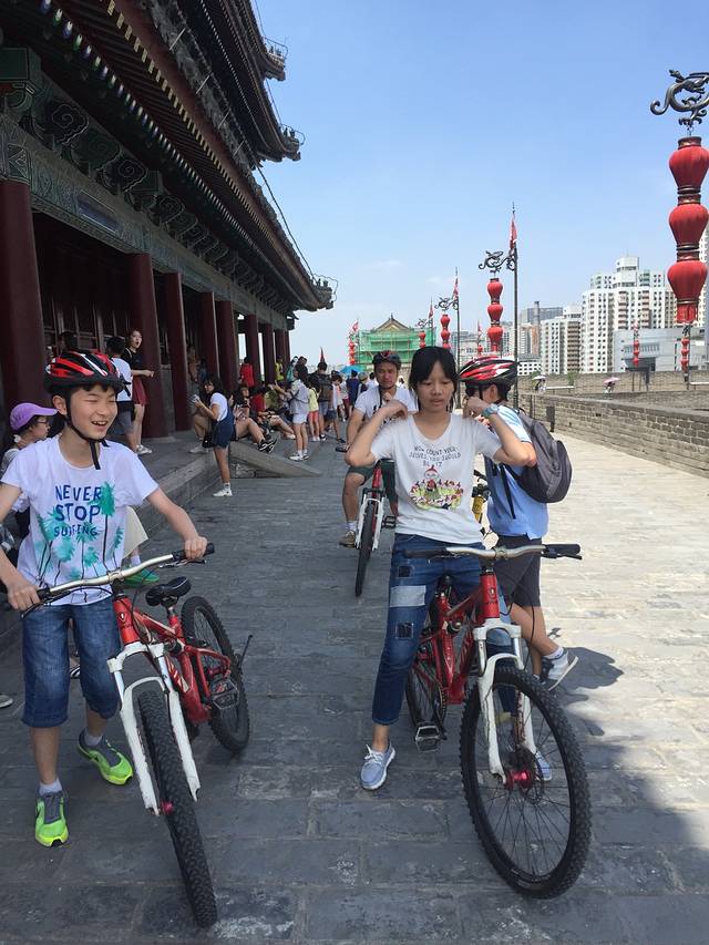 明城墙——我国保存最完好、规模最大的古城墙。由于今晚就坐火车回家了,所以没有行程,没有时间限制,孩子们在这里骑着自行车绕了一圈,用了二个小时。