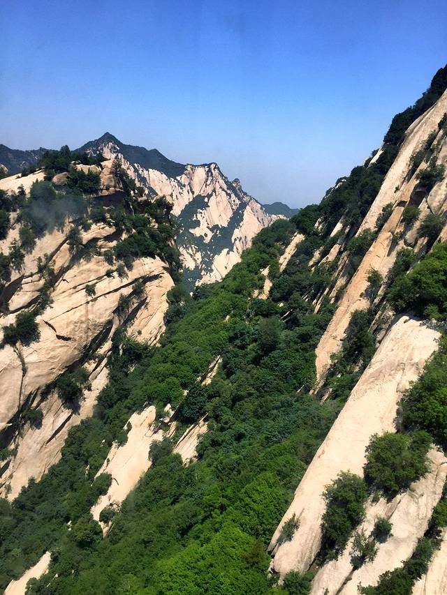 一路索道到西峰,沿途山峰的险峻惹得同行的人们惊叫连连。