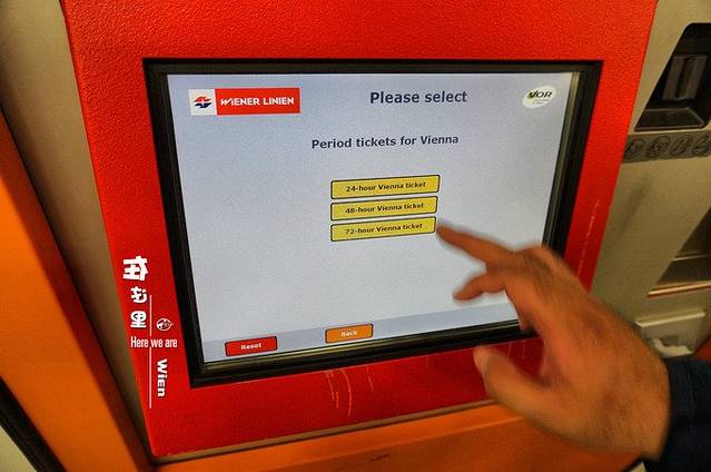 在维也纳地铁电车妥妥滴,景点差不多都可以到。在地铁进站旁都有自助售票机。交通票有24/48/72hr三种,可根据各自行程而定,一票在手,在规定时间内,所有公共交通任君去座。
