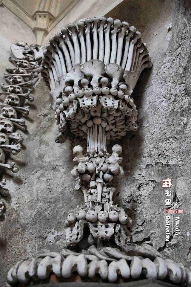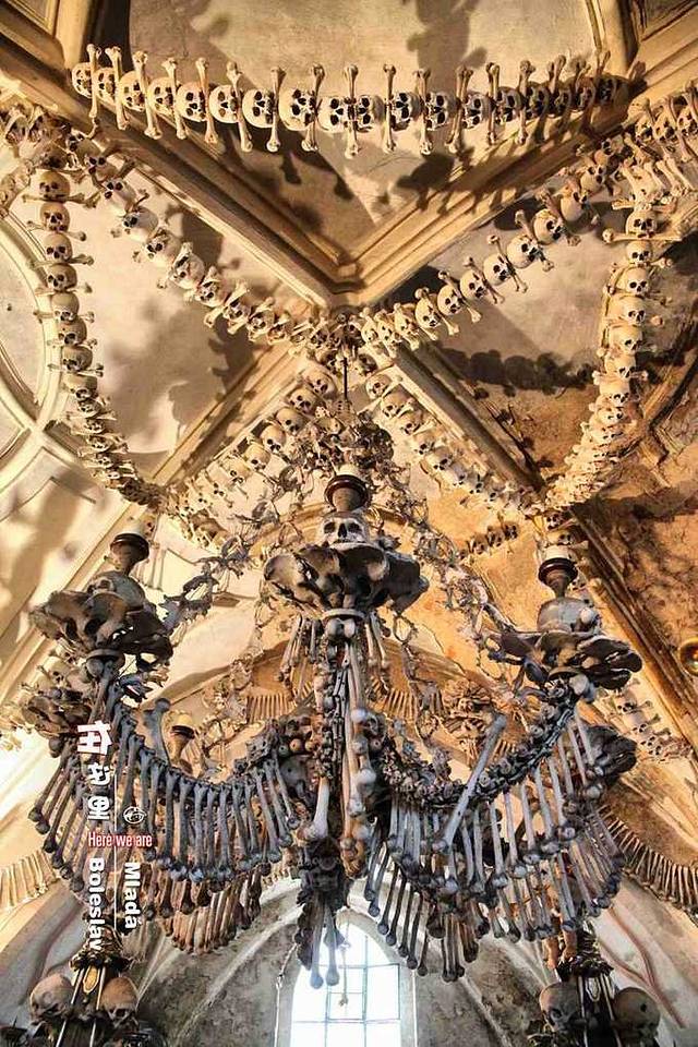 世界上最著名的人骨教堂,坐落捷克在库特纳霍拉郊区的塞德莱茨骨库。从外观上看,和其它教堂相比没什么差异,甚至显得有些简单粗陋。但里面,让我们闭住呼吸。。。