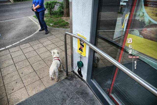 我们住的地方应该是在居民区里,超市餐厅比较多,地铁站也在一个小公园里。主人进超市,汪星人只能在外等候了。