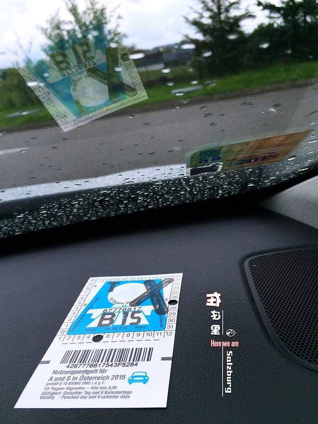 进入奥地利后,尽快的找了个加油站买了高速票(10天有效期)。奥地利全是德语,还好能看懂点,按照票上说明,需把高速票贴在前挡风玻璃的后视镜附近。