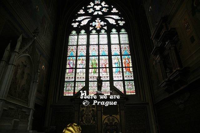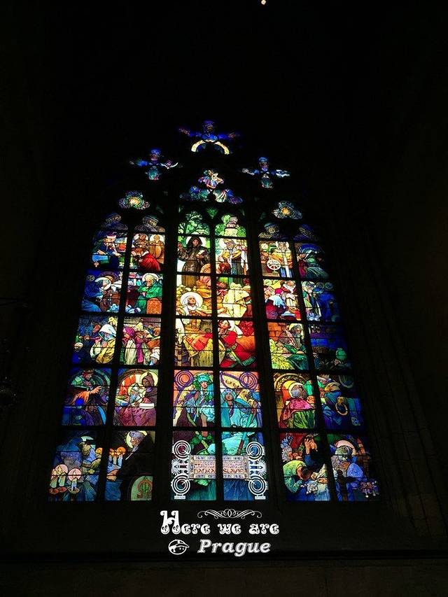 20世纪教堂更换的彩色玻璃窗为阿尔丰斯·慕夏作品,美轮美奂。