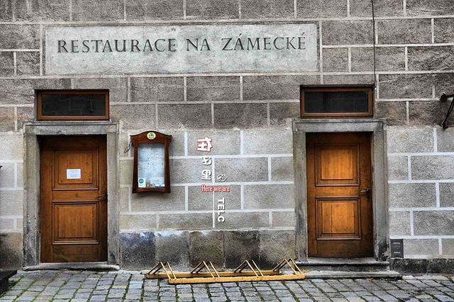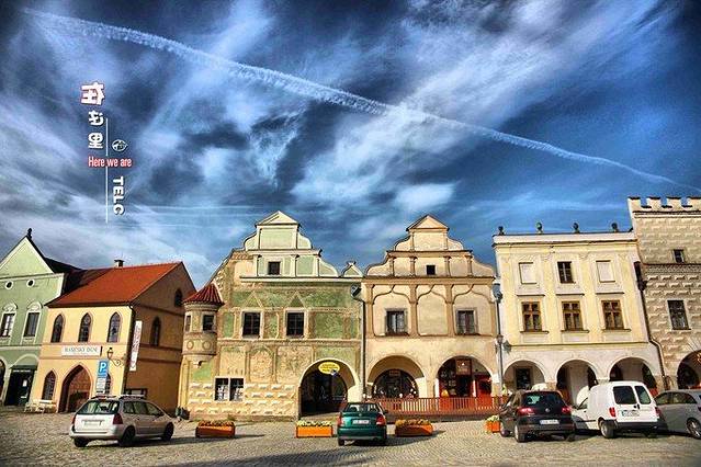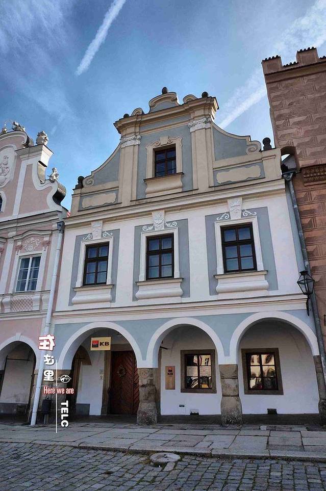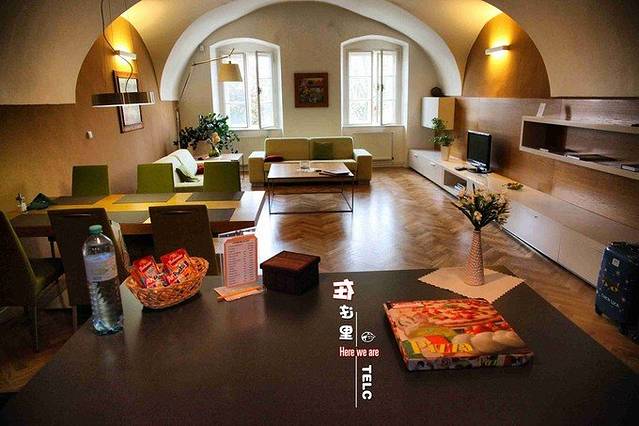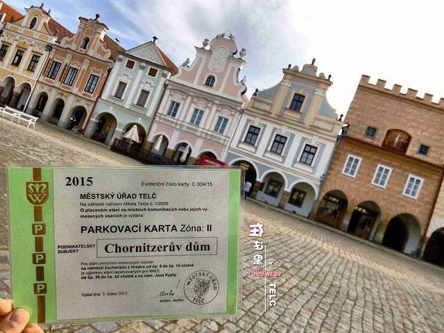 泰尔奇,位于捷克的摩拉维亚东南部,靠近波希米亚边界,距离奥地利边境25公里。由于导航错误,到达时已临近傍晚。小镇里道路较窄,我们只好先把车停好,步行去找住处。(这个收费还算便宜)