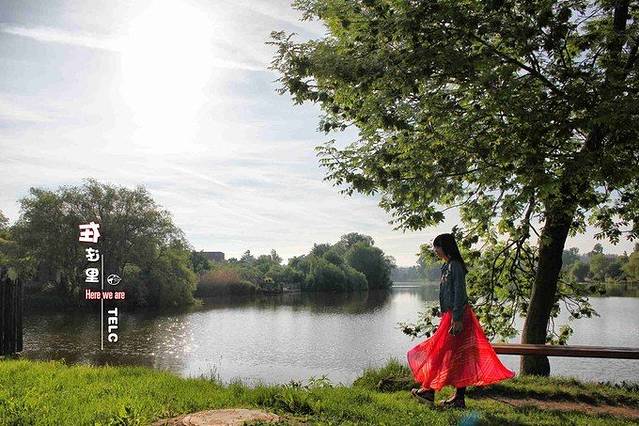 随意的走到了湖边,波波粼粼,睁不开眼。湖的这边应该是居民区,不时看到三三两两去上学的孩子。