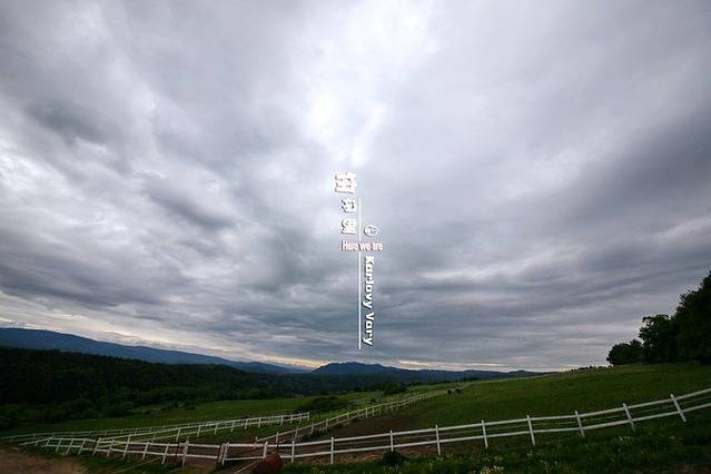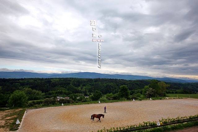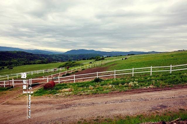 感觉这儿更像是一个农场,店主正在遛马。天空像一面硕大的镜子,远处黛色群山,与郁郁葱葱的草原,一层一层映入眼帘,倏来倏往,目不暇给。