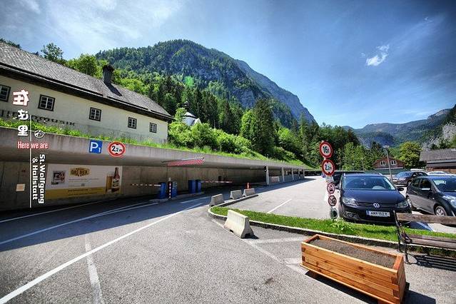 下一站哈尔施塔特,这里有三个停车场,P1离景点最近,开进去的时候拿卡上面会mark上时间,离开的时候记得去自助机器上缴费(可以选择英文,按提示投币),出来的时候再把卡插进去就可以了。我们就闹了笑话,幸好有好心人帮忙。