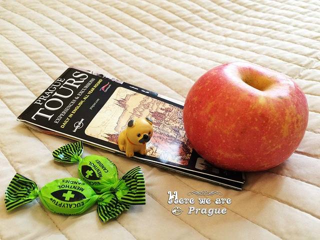 出了机场,就看到了要座的有轨电车,直接坐到地铁站,然后就到酒店了,一切都很顺利。捷克的天气比较爽朗,没有帝都这么燥热。酒店前台很贴心,上来递出两杯苹果汁(开始还以为是香槟呢,嘿嘿),还主动给我们了一张map,讲解了下主要景点方位。