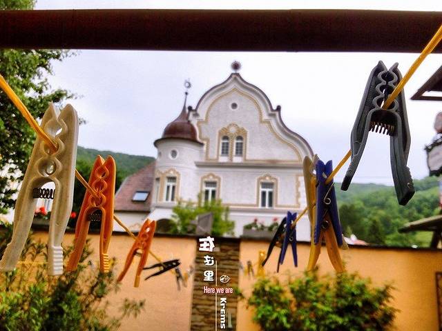 去温泉小镇——卡罗维发利(KV)之前,要先到住处。后来发现,难找的酒店坐落在山间里,但在众多好心人的帮助下找到了它。(上图就是大拿骆在问路呢,由于妈妈听不懂英文就让女儿出来帮忙,女儿豪爽滴拿出笔记本帮忙Google地图;还有一位看门老大爷自己不知道在哪,打电话问别人,然后手绘了一张图给我们)。感觉有点像在拍“急速前进”,问了一家又一家,跟着一个又一个提示,最后到达终点,挺有意思。