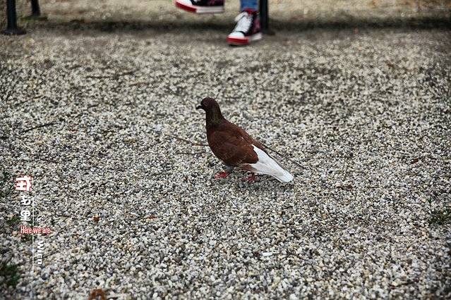 摆拍的时候,一只鸽子在中间抢足了镜头。