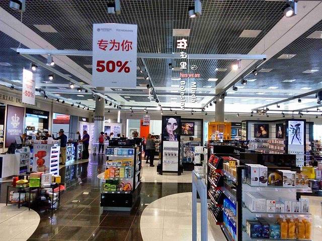 俄罗斯转机,这里简直是国人的天下,免税店里醒目的中文,大妈们也不用发愁语言不通,导购中文棒棒哒~