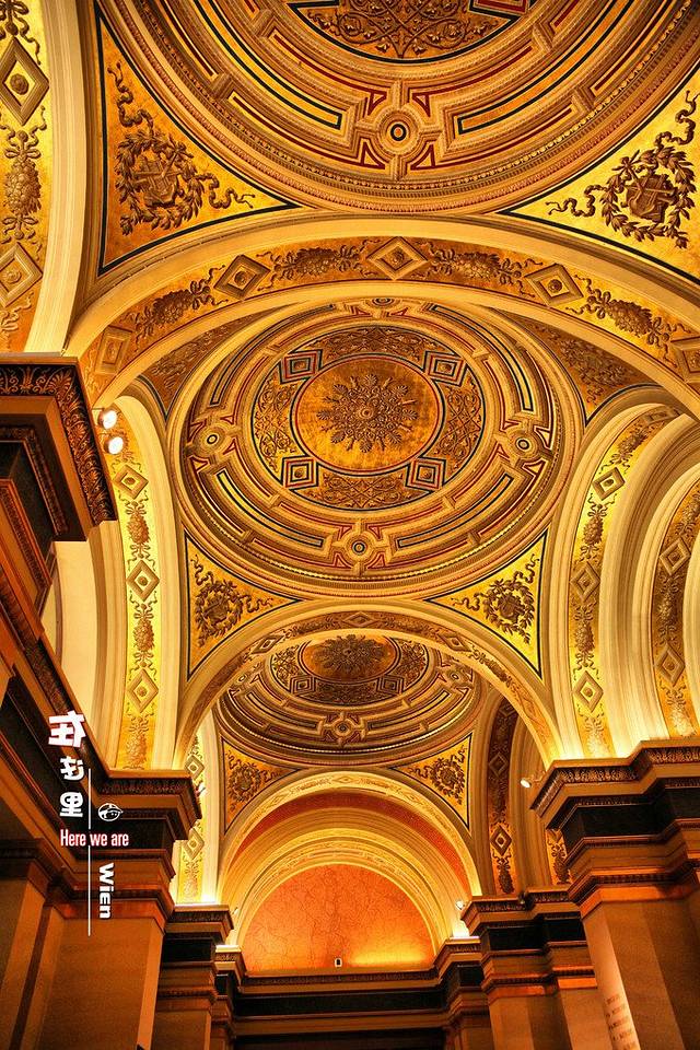 累了在大厅休息一下,抬头一看,房顶的壁画,水晶大灯,有够奢华。
