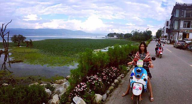 再度租车前往大理古城,应该是患了古镇麻痹症,逛了两个古镇后我们都对于大理古镇没有想象中的兴奋感,洋人街有许多特色小店,关于吃饭可以搜索大众点评网,大理的美食据说比丽江好吃很多,我们没有食欲所以没口福一品当地美食,骑上小摩托出发洱海湿地公园。