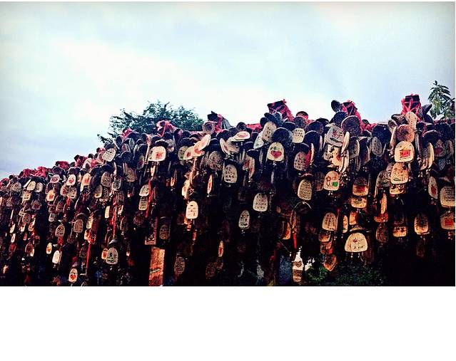 据说把愿望写在木板儿上挂上去就能实现愿望,可信吗?反正我没有信啦。