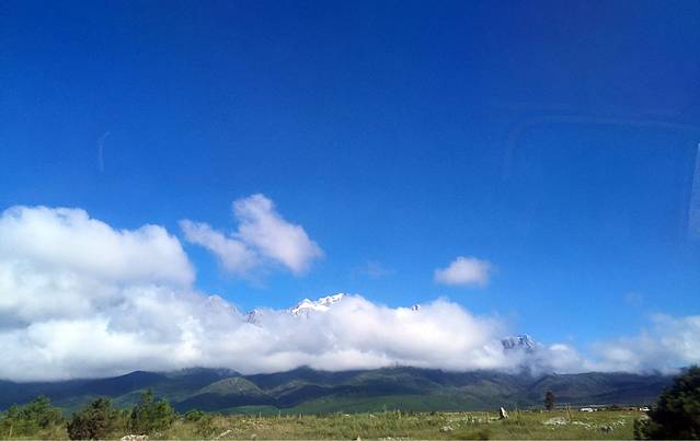 在客栈老板的推荐下我们报了一个玉龙雪山的纯玩团,580一个人,好处是导游不会强制推荐你消费,放开手让你自个儿玩儿,而且早上他会到你居住的客栈接你上车。