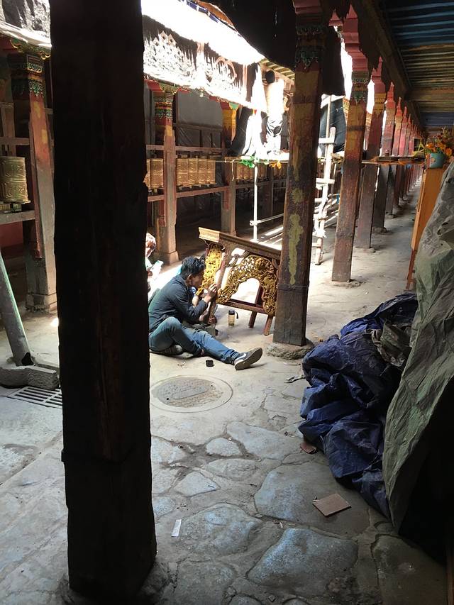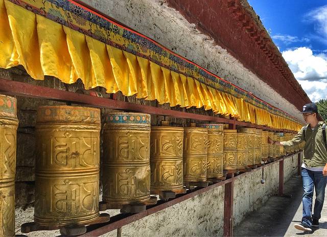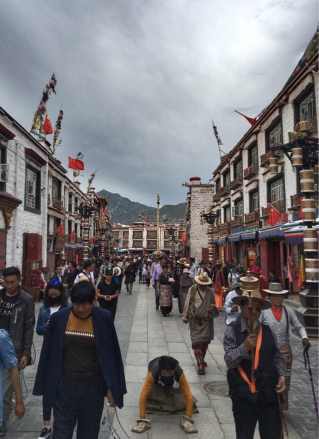 旅行的十多天里,在寺庙旁街道边,朝拜或转着经筒的人们随处可见。尤其是在在大昭寺旁,朝拜的藏民来来往往,络绎不绝。