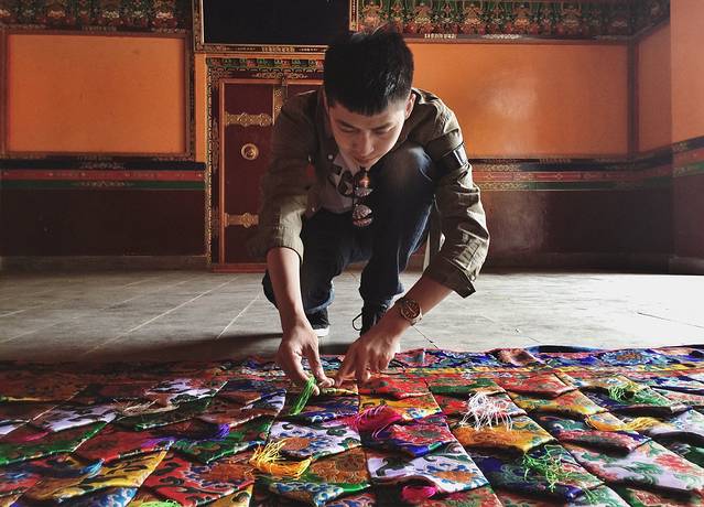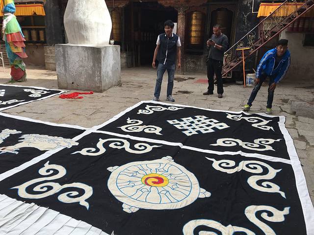 无意走进一家小院落,几位师傅正在摊开刚从寺院请回来的经幡