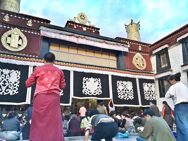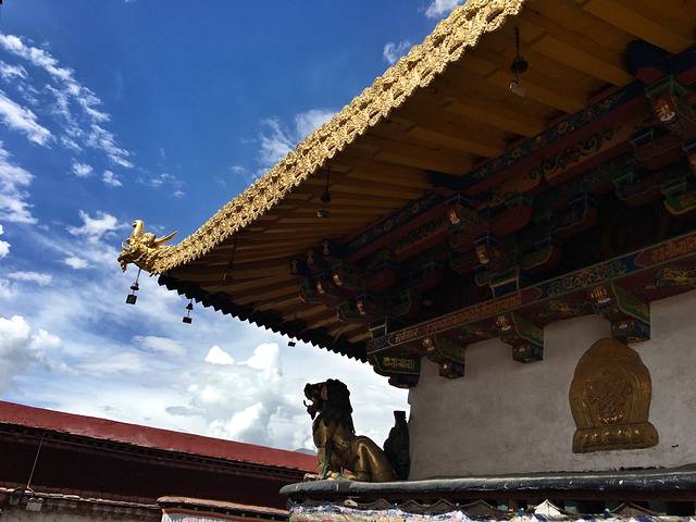 这一天可能是整个西藏行程里最晒的一天,吃过午餐顶着毒日来到大昭寺,大昭寺的宗教气息非常重,门口随处可见都是一些朝圣叩拜的信徒,对于第一次来到大昭寺的人来说,看着男男女女,老老少少面对佛祖虔诚跪拜,五体投地,心中都会被眼前这一幕所震撼,这份厚重的信仰让人感动。