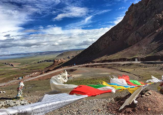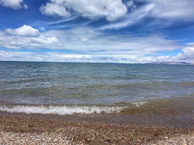 翻过海拔5190米的那根拉山口,不远处一条湛蓝无比的水带出现在眼前的视线里,传说中的圣湖即将到达,这时心里已是挡不住的兴奋。