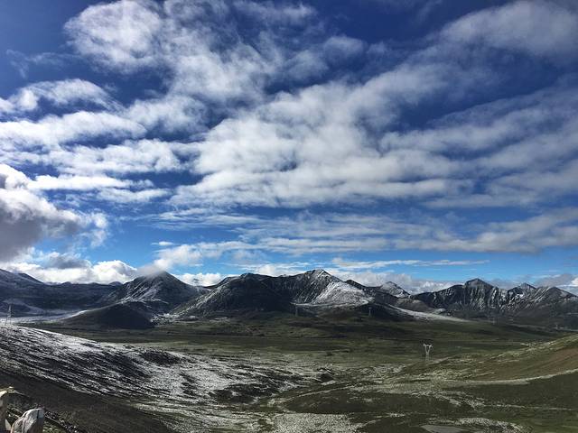 行程第三天,去林芝的措木及日,途径海拔5018的唐古拉山脉,昨天晚上下了点雪,所以就有这样的景色了。相传当年成吉思汗,率领大军欲取道青藏高原进入南亚次大陆,却被唐古拉山挡住去路,恶劣的气候和高寒缺氧,致使大批人马死亡。所向披靡的成吉思汗,只能望山兴叹,败退而归。