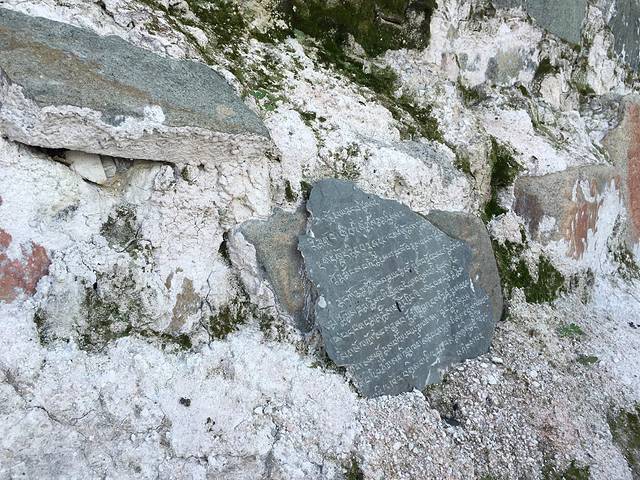 刻着经文的砖石